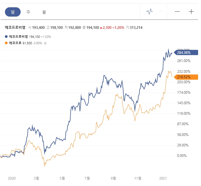 그렇기에 에코프로보다는 에코프로비엠이 기사량이나 대중들에게 더 알려진 편입니다.