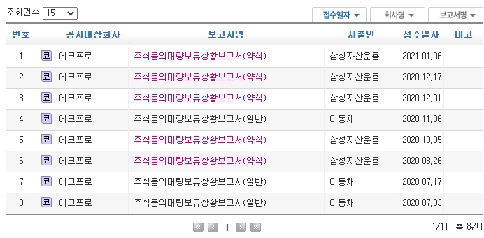 삼성자산운용이 처음으로 에코프로의 주식을 대량보유 공시한 것은 작년 8월입니다.
