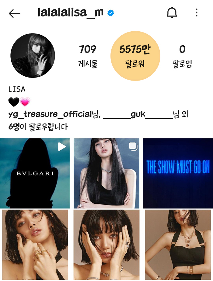 리사의 인스타그램 팔로워수는 대한민국에서 1등이며 정말 폭발적으로 증가하고 있습니다.